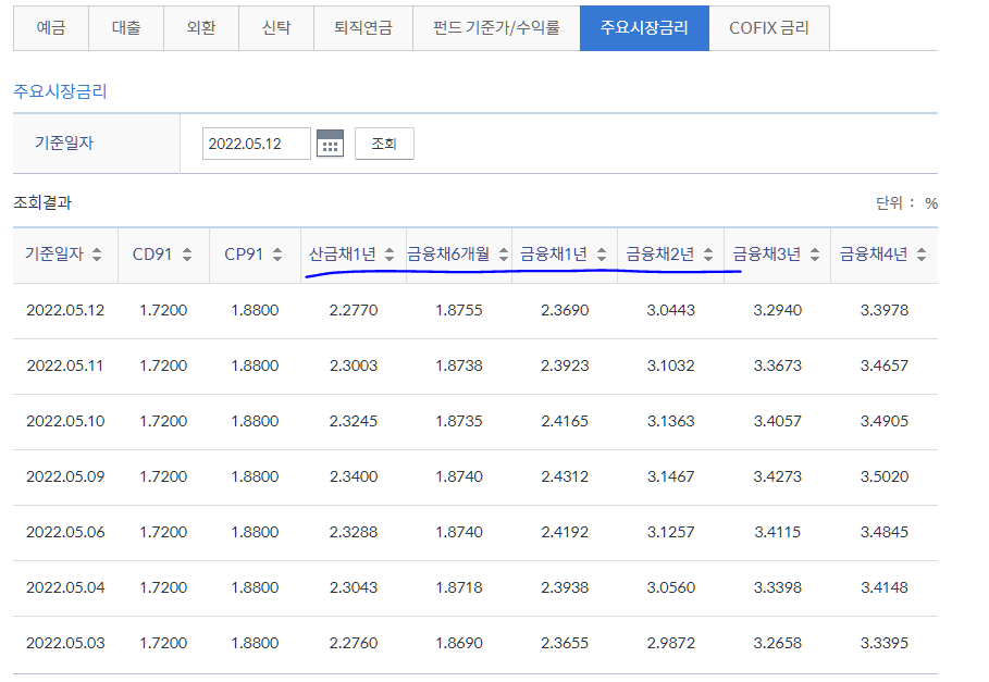 1금융권에서 2021년 5월 저금리 시기에 0.7~1%에 자금을 조달해왔네요. 우리는 그럼 1년 변동금리로 대략 2%에 대출을 받았겠죠?