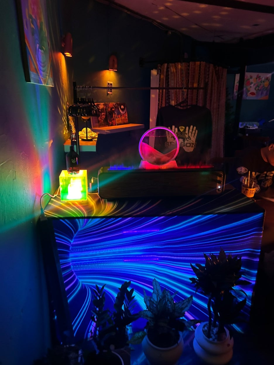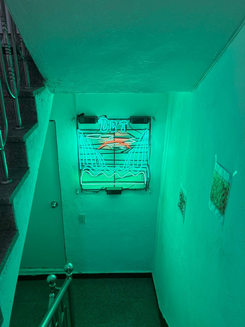 핑크계열의 조명을 좋아하는 편은 아닌데 초록파랑보라 조명은 힙한 느낌을 줘서 잊을 수 없을 것 같아요.