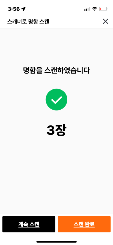 명함을 4장 넣었는데 어찌된 일인지 3장이 스캔되었다고 뜨네요.