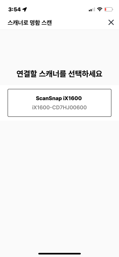 스캐너로 명함스캔을 누르시면 자동으로 연결할 스캐너를 찾습니다.