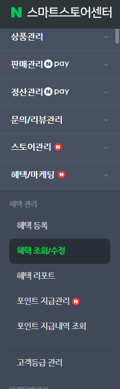 *비즈월렛을 활용한 혜택 조회/수정은 스마트 스토어 혜택관리에서 할 수 있습니다.