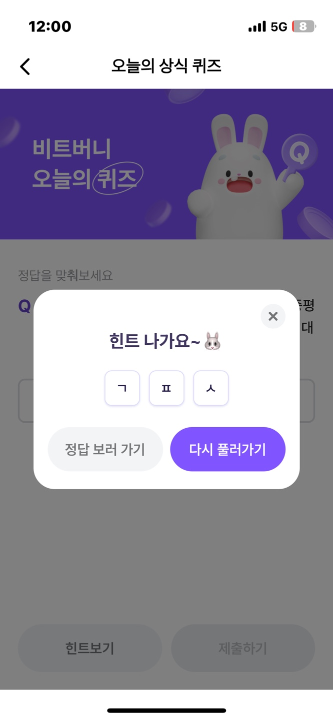 오늘의 #비트버니퀴즈10월23일 힌트는 'ㄱㅍㅅ'입니다. 하지만 이번주 힌트는 도움이 안되네요.