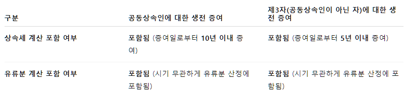 - 제3자가 받은 증여는 사망 전 5년 이내의 것만 포함됩니다.