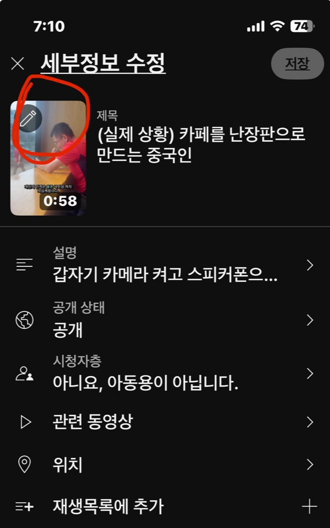 2. 기존 쇼츠 동영상 썸네일 수정: