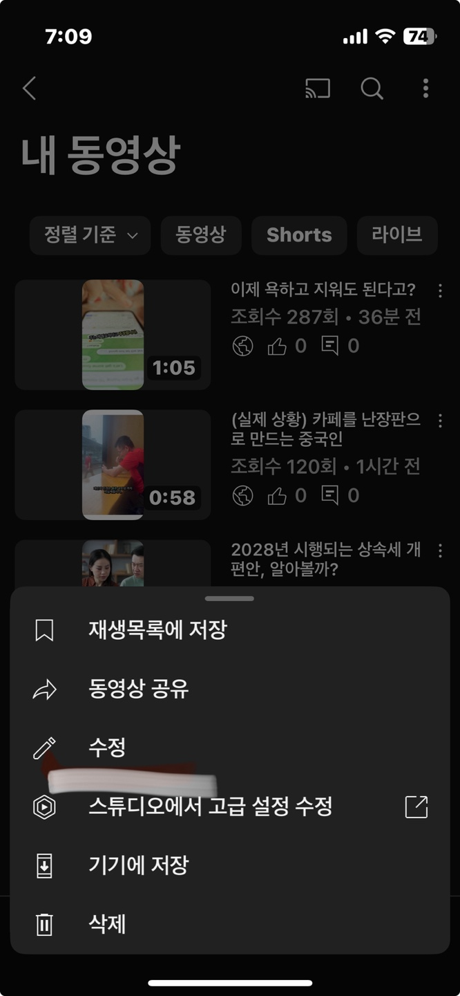 업로드한 유튜브 수정하실 때 어디서 하시나요?