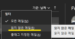 - 읽지 않음을 선택하면 현재 폴더의 읽지 않은 메시지만 메시지 목록에 표시됩니다.