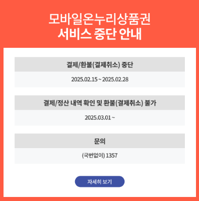 ✅모바일 온누리상품권 서비스 중단되었습니다✅