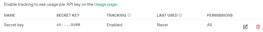 그러면 API 키 관리 화면으로 이동할텐데요. 여기에서 Create new secret key 버튼을 클릭하면 API 키가 발급됩니다.