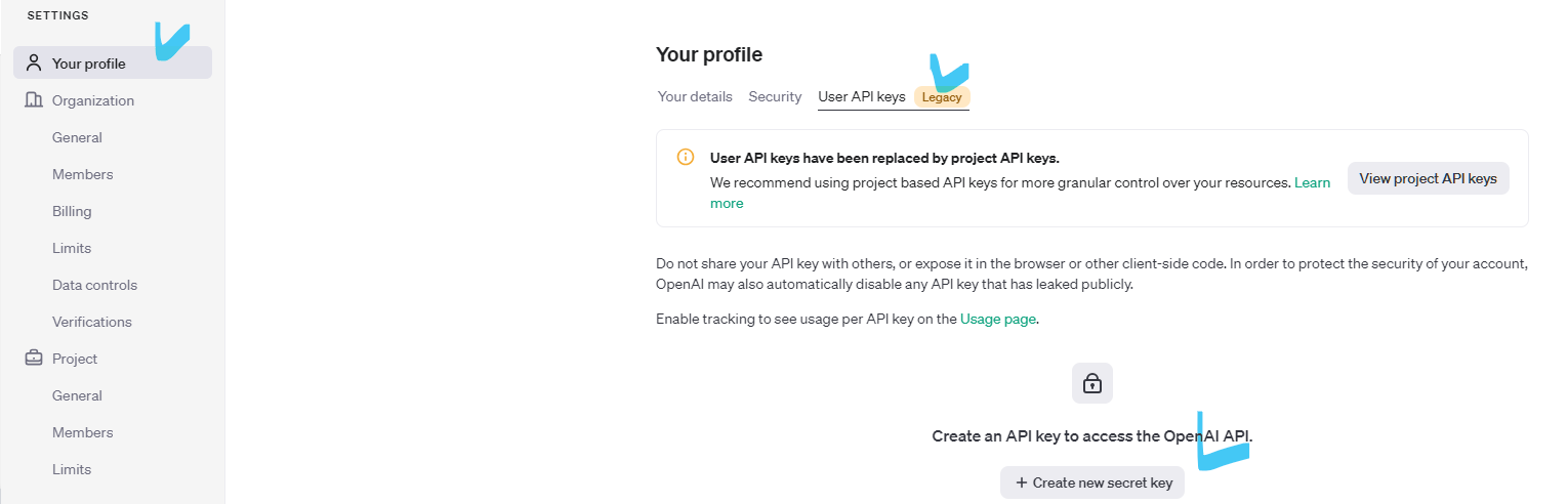 저는 짧은 후기를 작성하는 용도로 My GPT를 만들어봤는대요. 저만 사용하고 싶지 않고 공개적으로 사용하게 끔 하려고 하는데 ChatGPT 스토어에 올리려면 API 키 발급이 필요하더라고요. (수익이 발생할지는 모르겠지만) 일단 올려보기로 합니다. API 키를 발급 받으려면 먼저 OpenAI에서 회원 가입이 이미 선행되어 있어야 한답니다.